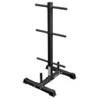 Keep your workout space clean, safe, and clutter-free with our Standard Bar and Plate Storage Rack, the ideal solution for both home and light-commercial gyms. This durable rack is designed to neatly store and organize your 1” standard weight plates and barbells, offering a practical way to keep your gym orderly. Maximize the organization and accessibility of your gym equipment with our Standard Bar and Plate Storage Rack, designed to hold standard-sized barbells with 1" diameter sleeves.
