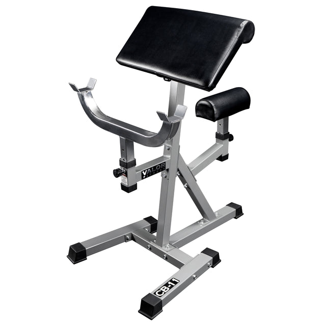 - FULLY ADJUSTABLE: Customize your setup with 5 arm pad heights (8.5” range), 3 seat levels (4” range), and 3 bar rack positions (4” range) to suit any body type or curl style.