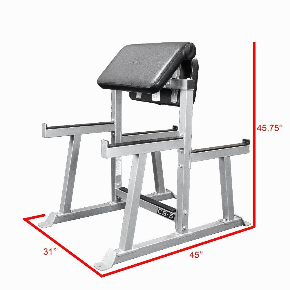 - COMPACT FOOTPRINT: An ideal fit for varied spaces, this Preacher Curl Bench takes up a space of just 45” x 31” x 45.75”, ensuring it doesn't overcrowd your workout area while providing maximum functionality.