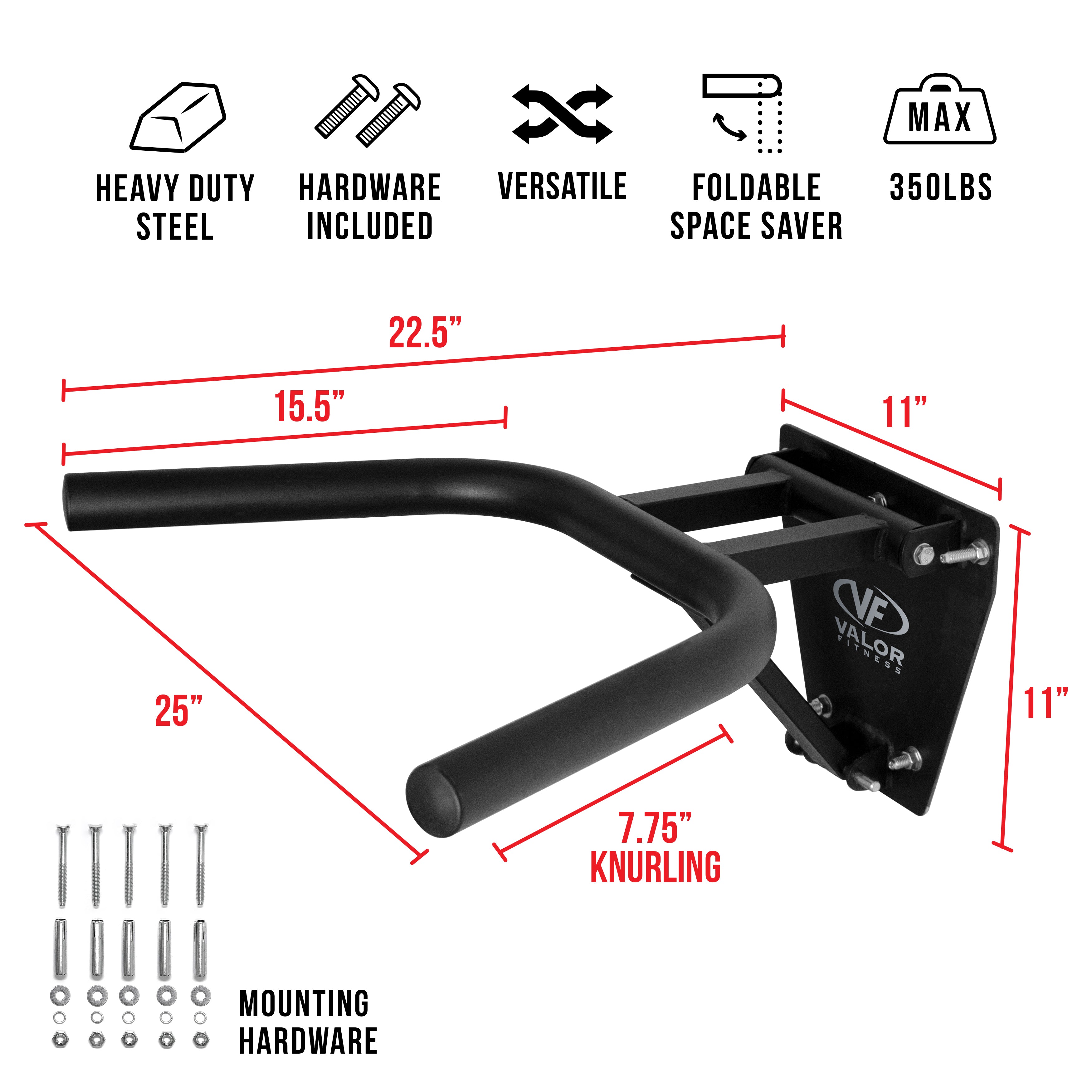- VERSATILE GRIP OPTIONS: The tapered handles allow for a range of grip widths from 17" to 25", enabling varied intensity in workouts and targeting of specific muscle groups. Each dip bar handle has a diameter of 1.75".