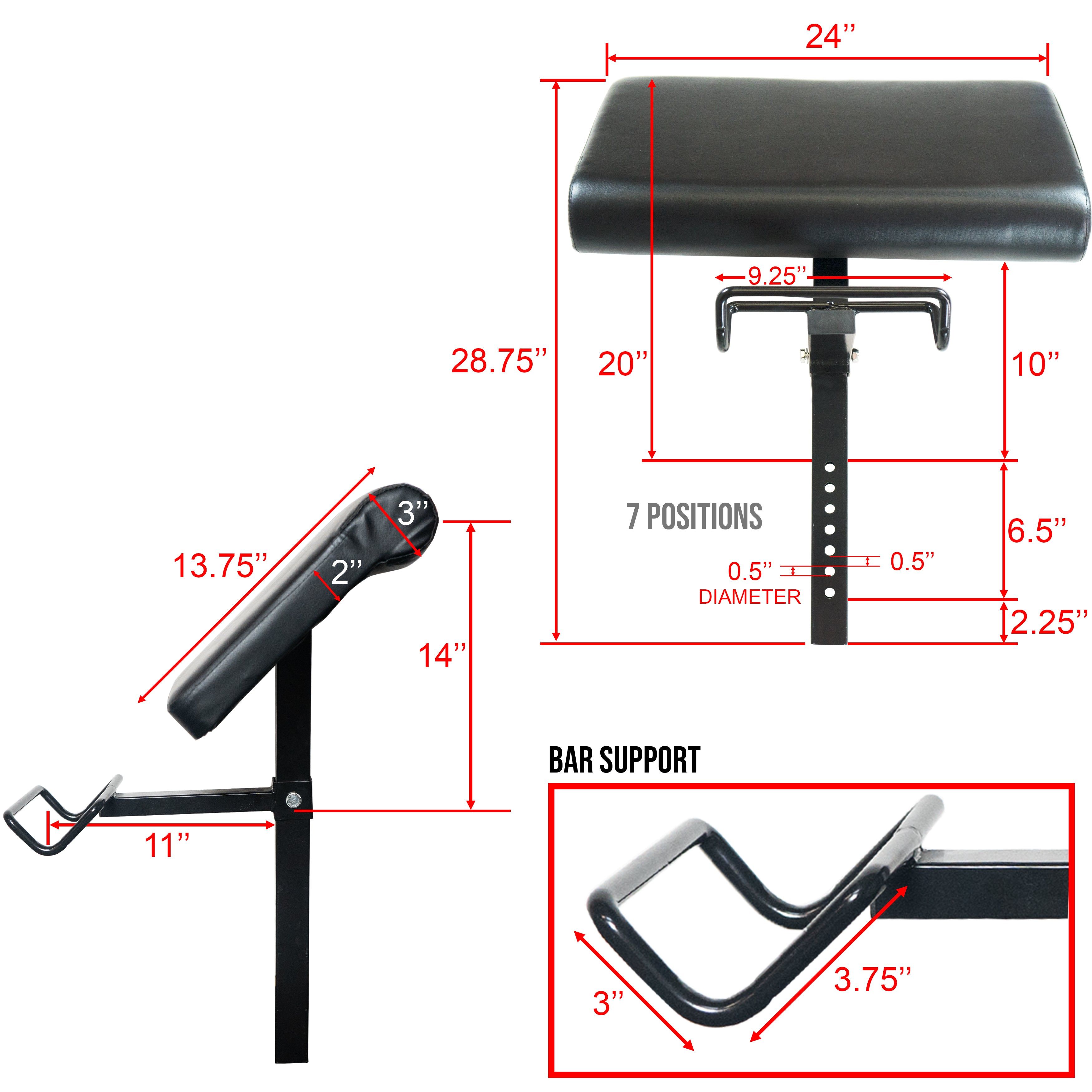 • BAR HOLDER: This attachment is everything you need to perform your bicep curls. It also includes a sturdy 9.25” wide steel bar holder can hold up to 150 lb. Positioned just below the pad for easy access when lifting.