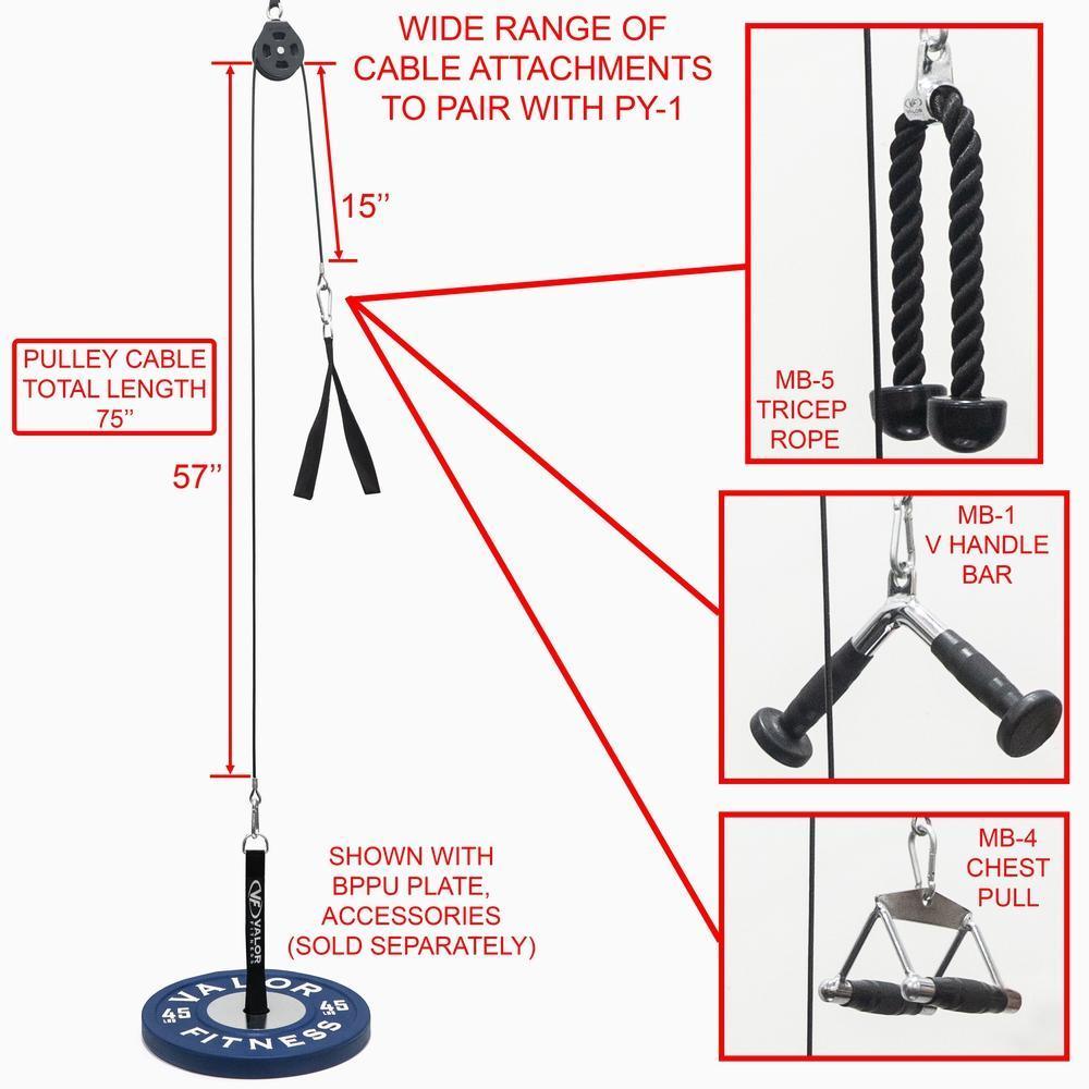 This Pulley Station is ideal for on-the-go and at home cable workout. When putting together a home or garage gym, space is always a factor. We are often unable to get our dream fitness center at home due to a sheer lack of space. With the Valor Fitness PY-1 Portable Cable Station, you can save plenty of space in your home gym while getting an intense cable workout like those you can perform in a commercial gym.