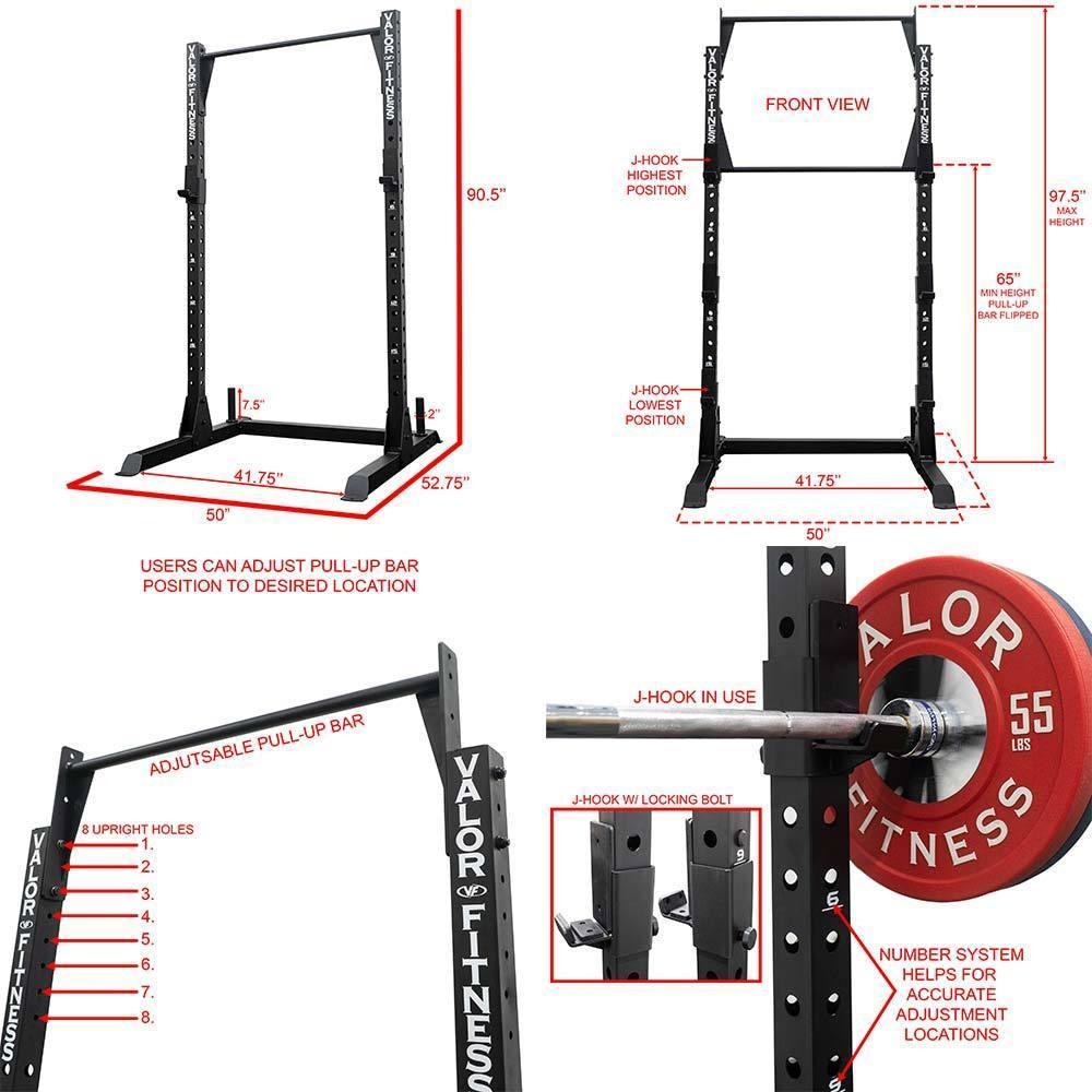 - EXPANDABLE WITH ATTACHMENTS: Compatible with Valor Fitness 3x3 rig add-ons like landmines, dip bars, cable systems, wall ball targets, and spotter arms. Turn one rack into a complete home gym.